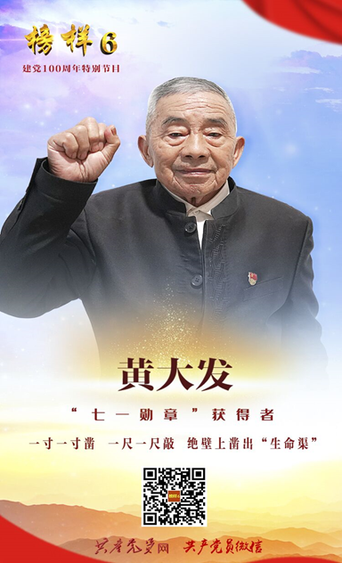 他一心為民、埋頭苦干、百折不撓。為解決草王壩村山高石多、缺水嚴重的問題,他帶領村民歷時36年,靠著鋤頭、鋼釬和鐵錘,建成一條跨3座大山、大小9個懸崖,主渠長7200米、支渠長2200米的“生命渠”,兌現了“水過不去、拿命來鋪”的錚錚誓言,為改善山區(qū)群眾用水條件、實現脫貧致富作出巨大貢獻,被譽為“當代愚公”。他堅守初心使命,帶領群眾脫貧致富。無論是在村干部任上,還是離任后,他心里始終裝著群眾,千方百計帶領村民發(fā)展生產。村里缺什么,他就帶頭干什么;群眾期盼什么,他就謀劃推動什么。村里通水后,他又先后組織了通電工程、通路工程,徹底改變了村民用電和出行問題。他說:這是我作為一名共產黨員的使命。在黃大發(fā)精神的感召下,近年來,村“兩委”班子帶領村民發(fā)展中藥材,種有機稻米、有機高粱,發(fā)展精品水果產業(yè),養(yǎng)殖肉牛、生態(tài)豬、蜜蜂等,群眾的生活發(fā)生翻天覆地的變化。2019年底,該村順利脫貧出列,全村建檔立卡人口全部脫貧。
